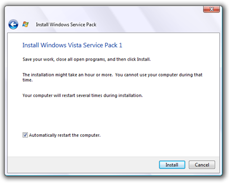 Method 1: Microsoft recommends using Windows Update to download and install Windows Vista SP1 on single PCs because of driver issues.